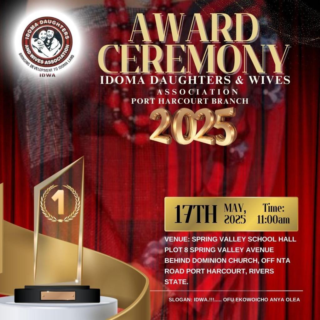 On the 17th of May, 2025, the Idoma Daughters and Wives Association (IDWA), Port Harcourt Branch, under the leadership of the coordinator, Mrs. Elizabeth Agada, the Ojonya 1 K’Idoma, held its inaugural and uniquely memorable award ceremony.